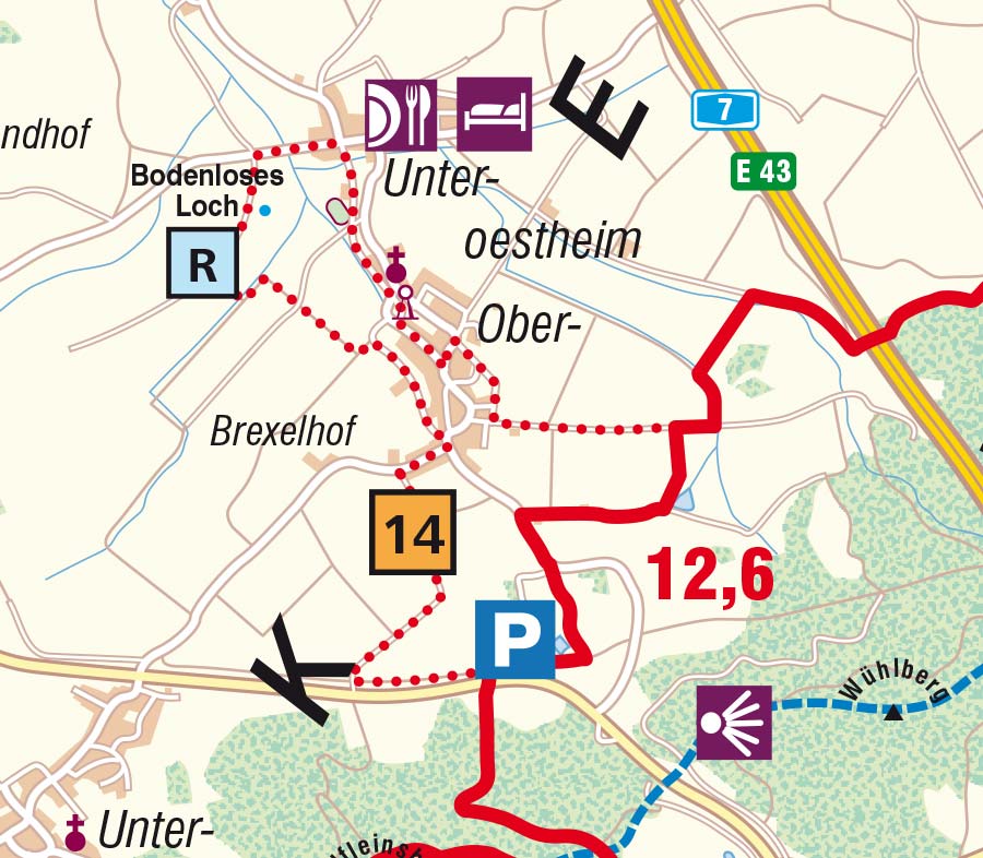 Einkehrmöglichkeiten in Feuchtwangen, Schnelldorf, Mosbach und Hilpertsweiler.